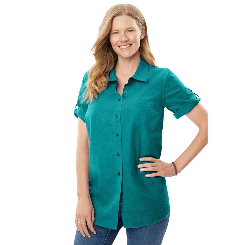 ウーマン ウィズイン レディース トップス シャツ ボタンダウン プラスサイズ 半袖 ダウン Woman Within Women's Plusize Short-sleeve Button Down Seersucker Shirt Waterfall