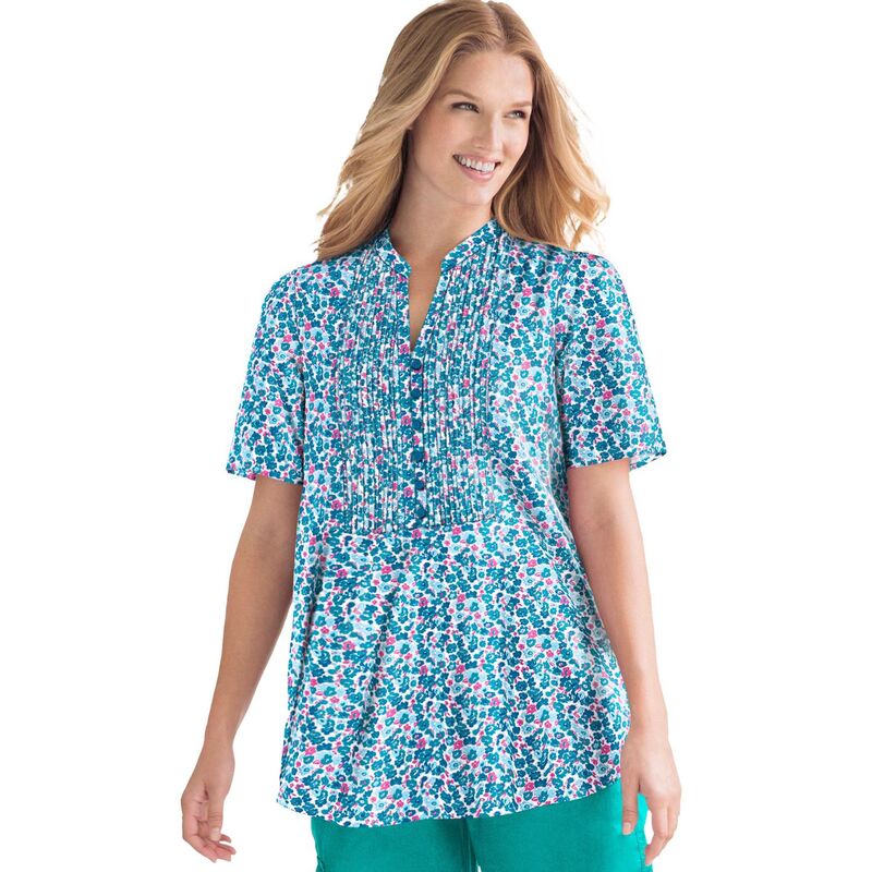 ウーマン ウィズイン レディース トップス Tシャツ プラスサイズ Woman Within Women's Plusize Pintucked Half-button Tunic Waterfall Blooming