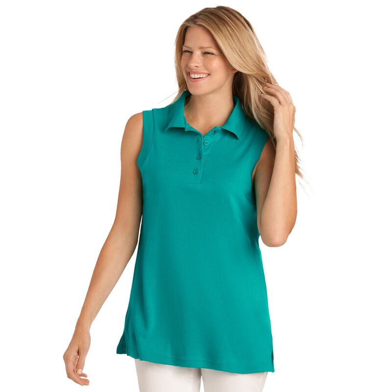 ウーマン ウィズイン レディース トップス Tシャツ ポロシャツ プラスサイズ ノースリーブ Woman Within Women's Plusize Sleeveless Polo Tunic Waterfall