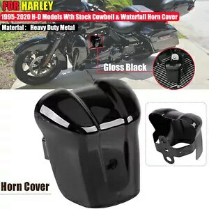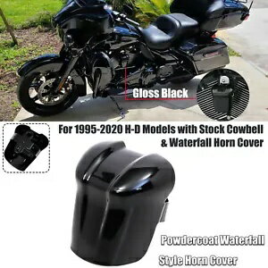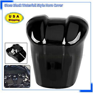 グロスブラックパウダーコートウォーターフォールスタイルホーンカバーハーレーツーリング95-2020に適合 Gloss Black Powdercoat Waterfall Style Horn Cover Fit For Harley Touring 95-2020