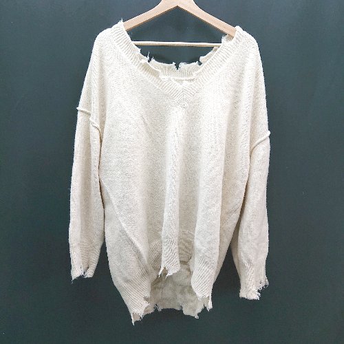 ◇ WCLOSET ダブルクローゼット Vネック オーバーサイズ 長袖 ニット 表記なし アイボリー レディース E 【中古】