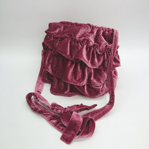 ◇ wcloset ダブルクローゼット ベロア 巾着 肩掛け フリル ガーリー カジュアル おしゃれ バッグ ピンク レディース E 【中古】