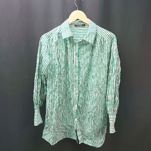 ◇ wcloset ダブルクローゼット ストライプ柄 オーバーサイズ 長袖 シャツ サイズ表記なし グリーン系 レディース E 【中古】