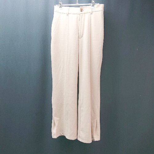 ◇ wcloset センタープレス スリット カジュアル ジップフライ ウエストゴム パンツ サイズFREE ベージュ レディース E 【中古】