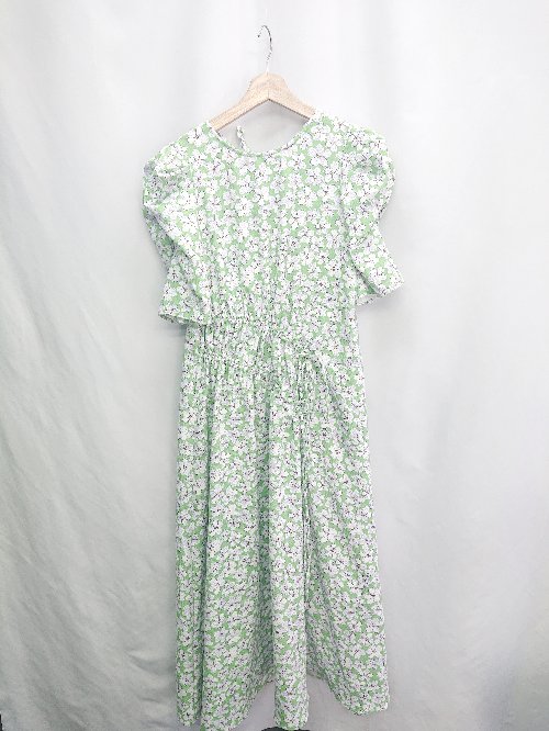 ◇ ⊂ Alley wcloset 花柄 バックリボン ウエストゴム 半袖 ロング丈 ワンピース サイズF グリーン ホワイト レディース E 【中古】