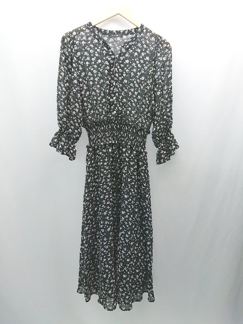◇ ◎ wcloset ダブルクローゼット 花柄 ガーリー 大人かわいい ロング丈 ワンピース 表記なし ブラック レディース E 【中古】