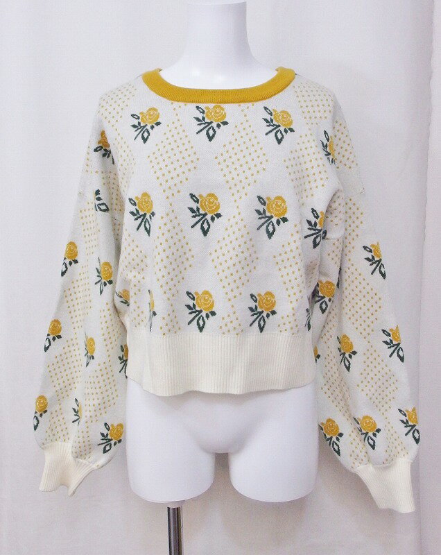【中古】w closet ダブルクローゼット バラ柄 バルーンスリーブ セーター F イエロー系 nm4608202876