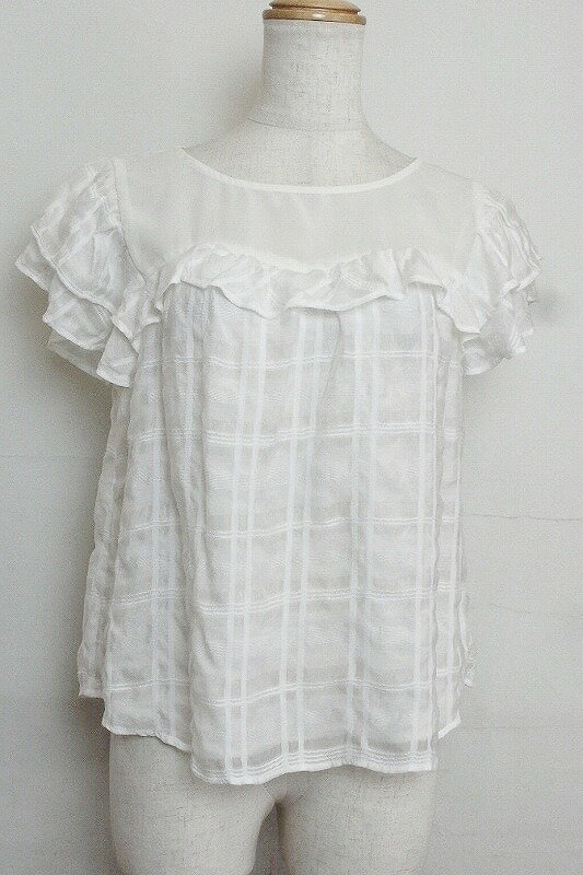 【中古】w closet ダブルクローゼット フレンチ袖 フリル チェック柄ブラウス F ホワイト系 ok3816157584