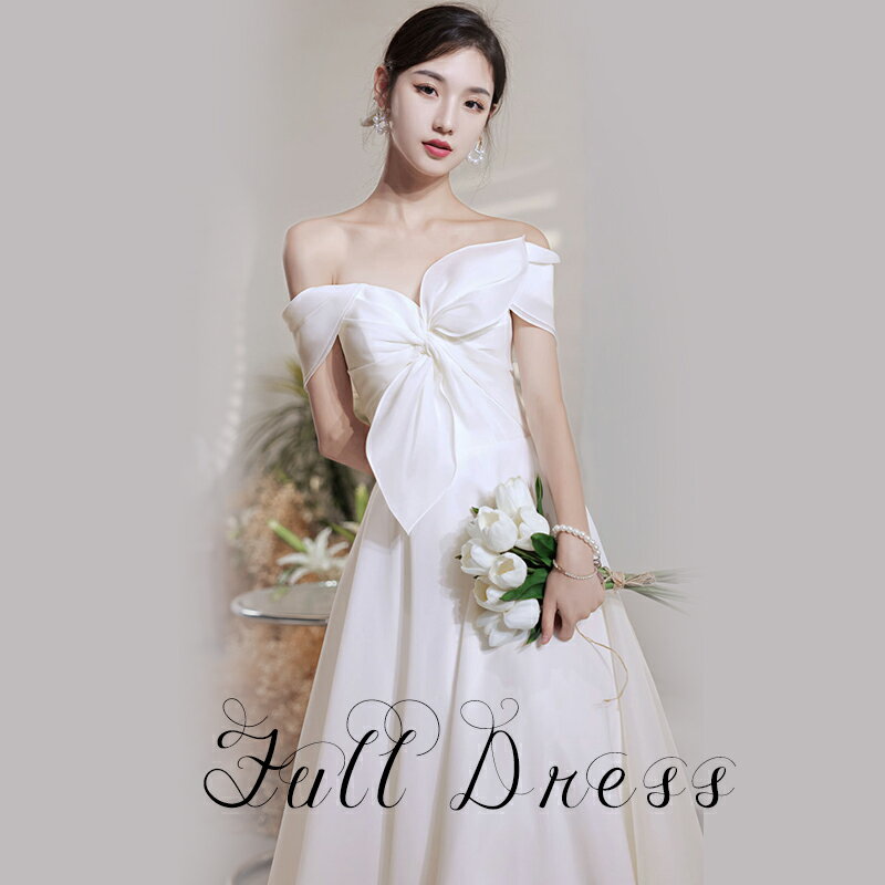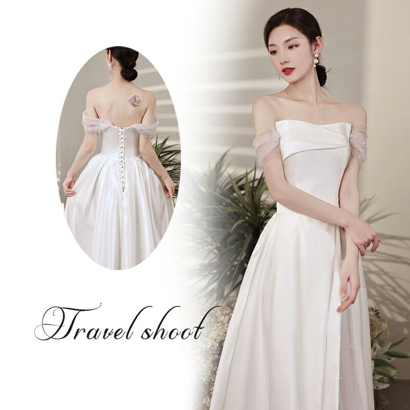 結婚式 花嫁 ウェディングドレス 二次会 披露宴 パーティードレス ワンピース プリンセスドレス wedding dress ブライダル ロングドレス オフショルダー お嬢様 パーティードレス ロングトレーン 小きいサイス 前撮り