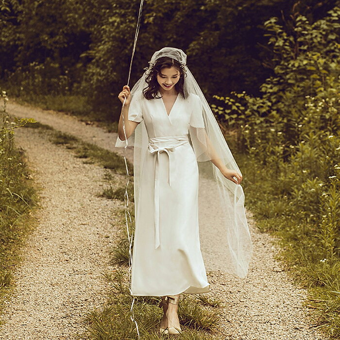 【P5倍★BLACK FRIDAY限定】ウェディングドレス ウエディングドレス 二次会 結婚式 前撮り ブライダル ロングドレス 花嫁 スレンダードレス スレンダーラインドレス サテン フレンチスリーブ 海外挙式 フォトウェディング オフホワイト wedding dress