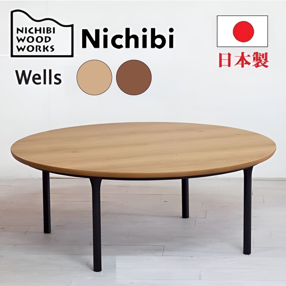 【日本製】日美 こたつテーブル Wells 直径100cmNICHIBI ウェルズ/オーク突板/円形テーブルローテーブル/オールシーズンおしゃれこたつ/こたつ単体/送料無料