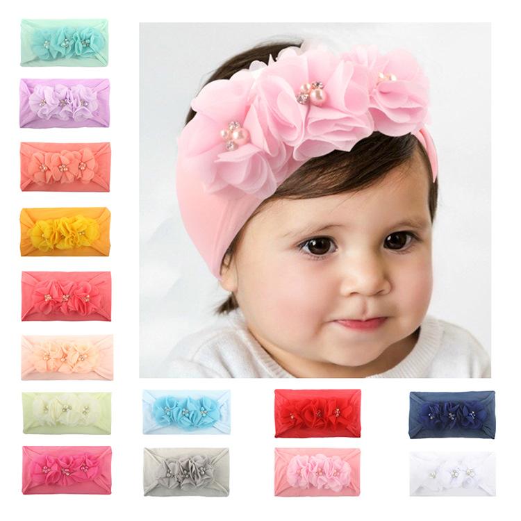 髪飾り ベビー 赤ちゃん ヘアバンド 欧米風 薄手 軽量 かわいい おしゃれ パール飾り 花柄 フラワーモチーフ 髪留め お出かけ 記念写真 春夏秋