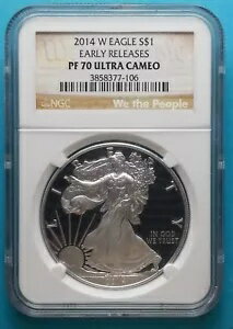 2014 W プルーフ シルバー イーグル NGC PF70 ウルトラ カメオ 初期リリース「WE THE PEOPLE」ラベル