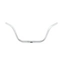 1インチ径のクローム・ハンドルバー。標準装備ロードキング・ハンドルバーより50mm高く、幅が38mm狭くなっています。’08以降FLHRおよびFLHRC、’08〜’13FLTR、FLTRU、FLTRXおよび’17以降FLRTモデルに適合。FLHRXSには適合不可。’08ABS装着車、サイドカー装着車は不可。ハンドルバーマウントゲージとは併用不可。取付パーツ(別売)が必要です。ヒーテッド・ハンドグリップ/ブラックラバー56100034とは併用不可。