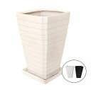 ホワイトスクエア陶器鉢(ストレート) L 10号用 +陶器鉢皿のセット(+鉢底石+鉢底ネットサービス)|ブルーミングスケープ