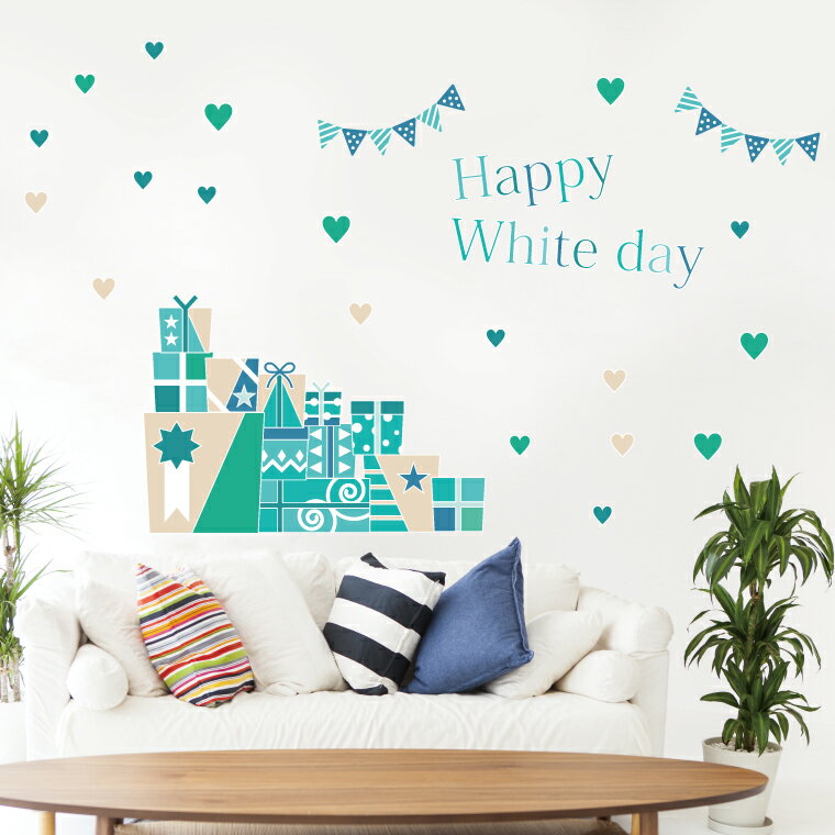 ホワイトデー☆シール式ウォールステッカー whiteday 3月14日 ハート 青 緑 プレゼント 飾り 装飾 おしゃれ 壁紙 剥がせる DIY プチリフォーム パーティ 賃貸■Lsize ■Msize ■Ssize ウォールステッカー全商品こちらから▼ ▼ ▼ ▼ ▼