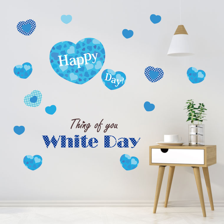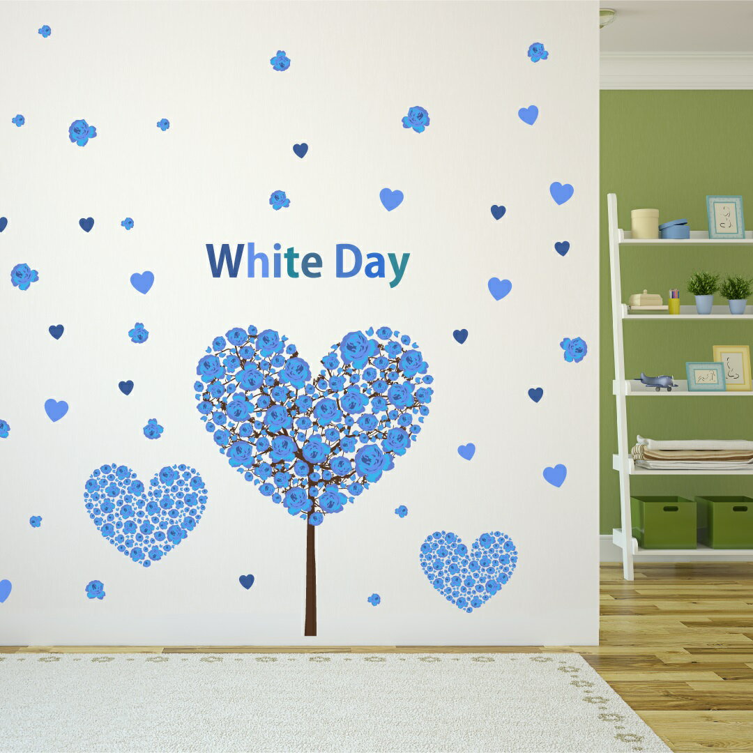 ホワイトデー☆シール式ウォールステッカー whiteday 3月14日 ハート 青 花 フラワー プレゼント 飾り 装飾 おしゃれ 壁紙 剥がせる DIY プチリフォーム パーティ 賃貸■Lsize ■Msize ■Ssize ウォールステッカー全商品こちらから▼ ▼ ▼ ▼ ▼
