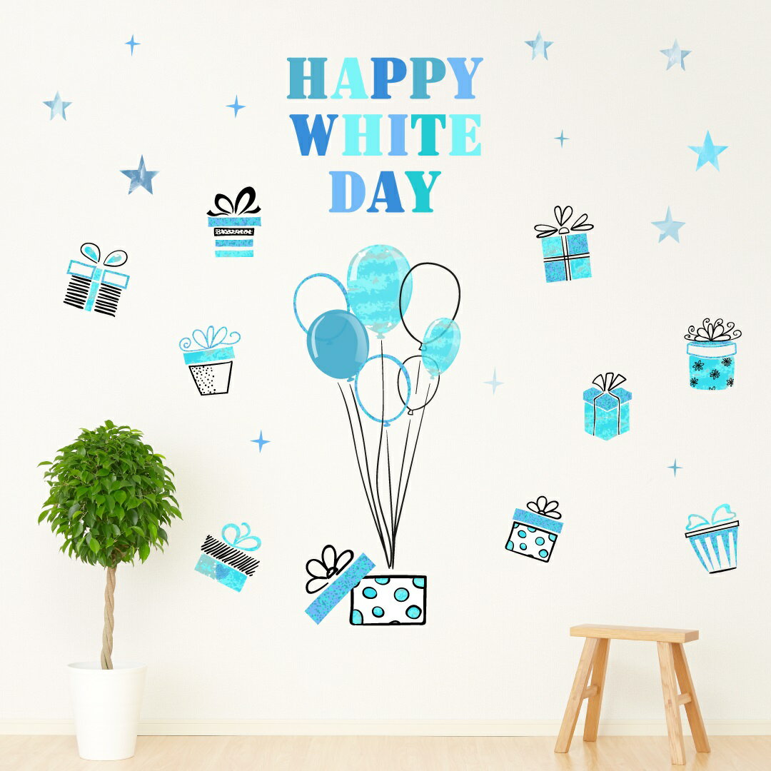 ホワイトデー☆シール式ウォールステッカー 3月14日 プレゼント whiteday 風船 青 ブルー かわいい 飾り 装飾 おしゃれ 壁紙 剥がせる DIY プチリフォーム パーティ 賃貸■Lsize ■Msize ■Ssize ウォールステッカー全商品こちらから▼ ▼ ▼ ▼ ▼