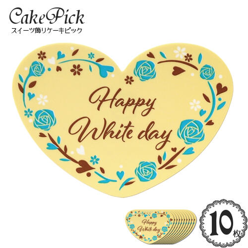 ケーキ 飾り ケーキピック 「ハッピー ホワイトデー ハート型 ローズ」(クリームイエロー&ブルー)(10枚入り)/スイーツ 装飾 プレート スタンド 飾り ピック ケーキトッパー ハート ローズ Happy Whiteday/