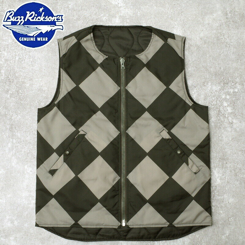 BUZZ RICKSON'S バズリクソンズ #BR15811 ブラック ラインクルーマン ベスト(MOD.)リバーシブル WILLIAM GIBSON COLLECTIONメンズ 男性 ミリタリー アウター トップス カジュアル アメカジ 日本製 ダイヤ柄