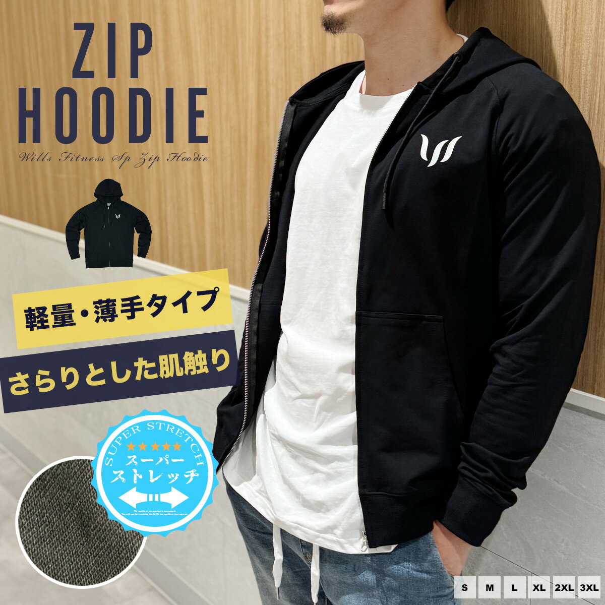 パーカー メンズ ジップ フーディー SP ZIP HOODIE 筋トレ WILLS FITNESS ウィルズ フィットネス ロゴ ジム ウェア スポーツウェア ストレッチ 黒 ブラック ユ00572