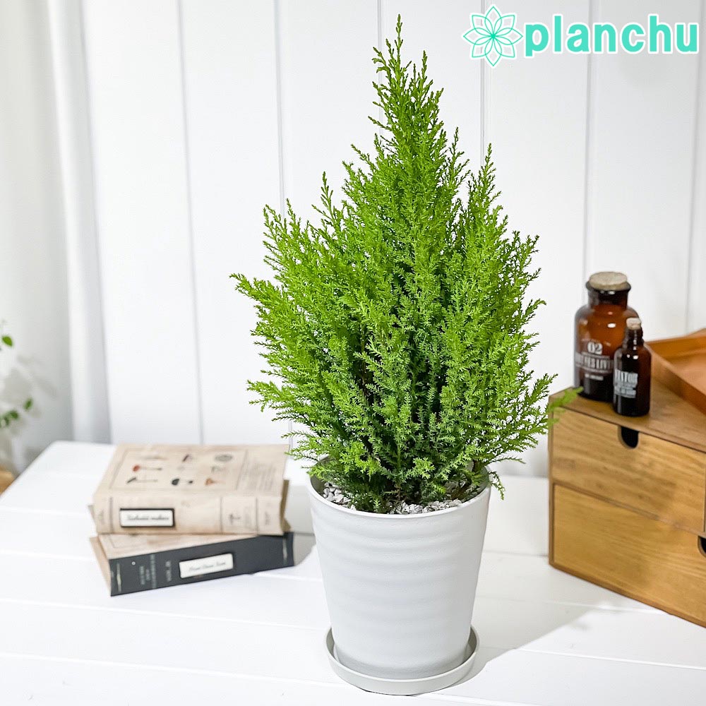 PLANCHU 観葉植物 コニファー ゴールドクレスト ウィルマ 5号鉢 受け皿付き 育て方説明書付き Cupressus macrocarpa ‘Wilma’ 庭木 植木 針葉樹 クリスマスツリー