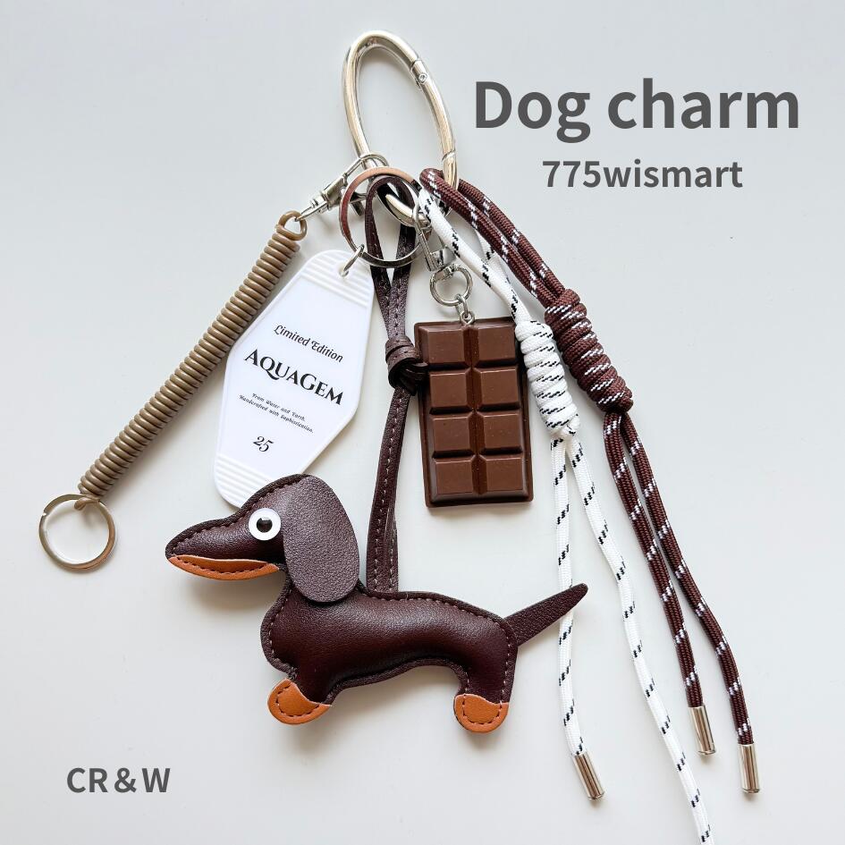 ブラウンダックスフンドチャーム キーホルダー チョコ カラビナ キーチャーム バッグ アクセサリー バッグチャーム 革 紐 スプリングチェーン 犬 かわいい おしゃれ CR&W 775wismart