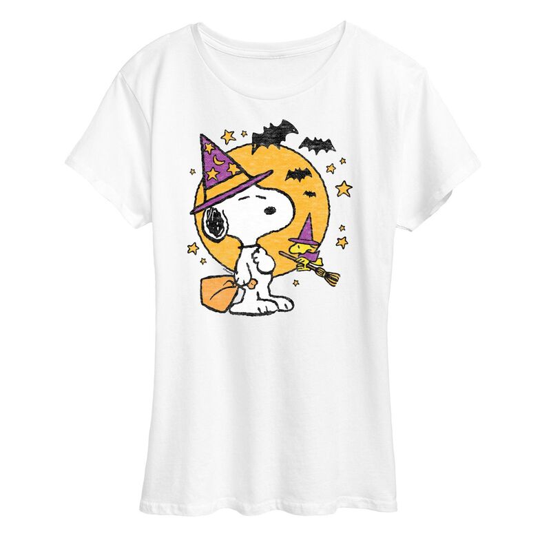 【送料無料】 ライセンス キャラクター レディース Tシャツ トップス Women's Peanuts Snoopy & Woodstock Witchcraft Graphic Tee White