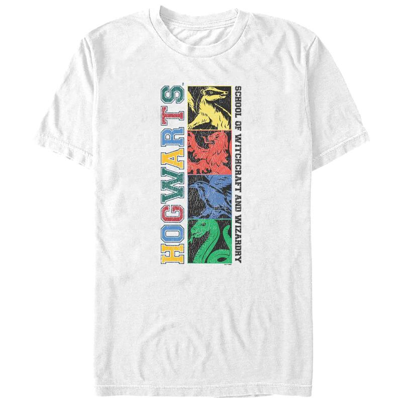 【送料無料】 ライセンス キャラクター メンズ Tシャツ トップス Big & Tall Harry Potter Hogwarts School Of Witchcraft And Wizardry Mascots Graphic Tee White
