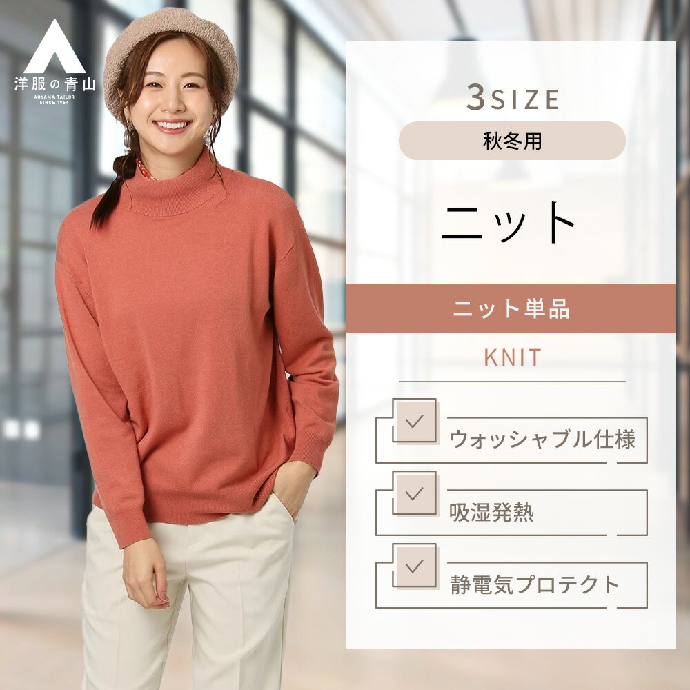 【洋服の青山】 ニット セーター レディース 洗える 秋冬用 ピンク系 モックネック ニットプルオーバー 吸湿発熱 すごセーター ANCHOR WOMAN トップス ビジネスカジュアル オフィスカジュアル 長袖 ウォッシャブル 静電気プロテクト おしゃれ かわいい