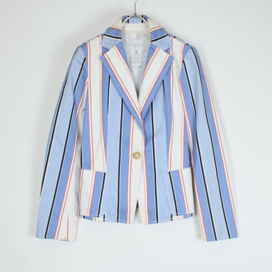 【WOMENS】【中古】【送料無料】(KA) CELINE (セリーヌ) MADE IN FRANCE MULTI STRIPE TAILORED JACKET フランス製 マルチストライプ テーラードジャケット BLUE/MULTI [SIZE: 38 USED]