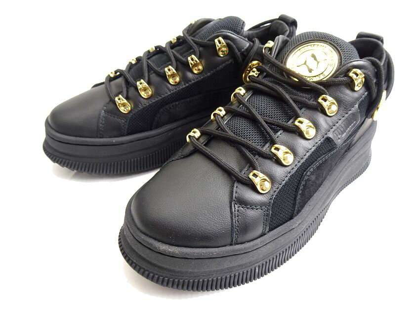 【中古】【新古品・未使用品】PUMA プーマ BALMAIN バルマン デバ ウィメンズ レザー レースアップ スニーカー372593 定価5.5万 ブラック 22-1 23-2 ▲022▼20131r07