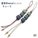 【天然の木と藍、オーガニックカラーのジャパンブルー】 藍染めwoodストラップ キューブ
