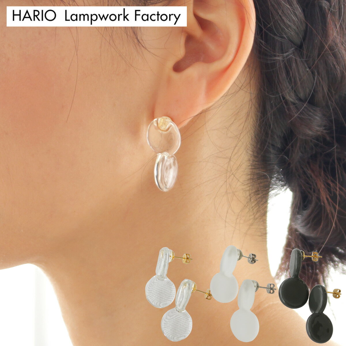 特長 自然の中にある鳥や花などをモチーフにした雑貨を手がけている「BIRDS’WORDS」がデザインし、HARIO Lampwork Factoryが制作したガラスのアクセサリーです。 老舗耐熱ガラスメーカー「HARIO」の職人がひとつひとつ手作業で作っています。 繊細なデザインとガラスの透明感が女性らしさを引き立ててくれるアクセサリーです。 2つの円が角度を変えて交差し、心地良いバランスを生み出します。交わる接点が溶け合って、見る角度によって印象が変わる面白さも楽しめます。 透明感の際立つ「クリア」と柔らかな曇りガラスの風合いが優しい印象を与えてくれる「フロスト」、深みのある色合いが魅惑的な「ポートランドグレー」の3種類からお選びいただけます。 耐熱ガラスは他のガラスに比べて比重が軽いので、身につけていてもストレスを感じにくい素材です。 夏は涼しげに、冬は暗くなりがちな服装を上品な印象に、季節を問わずお使いいただけます。 BIRDS' WORDSデザインの専用箱に入っています。ギフトとしてもおすすめです。 仕様 サイズ:[ガラス大きさ]約3.2×1.5cm 箱サイズ:約11×15.5×3.3cm 素材:[クリア・ポートランドグレー]硬質ガラス、真鍮、ゴールドメッキ、[フロスト]硬質ガラス、真鍮、ロジウムカラーメッキ 原産国:日本 attention ご使用後の返品はお受けできかねます。予めご了承ください。 手作りのため、形状に個体差が出る場合がございます。 アクセサリーの金具は、体質によってかゆみ・かぶれが生じる場合があります(金属アレルギー等)。皮膚に異常を感じた時はご使用をお止めいただき、皮膚専門医にご相談ください。HARIO Lampwork Factory バーズワーズ ピアス ポイント HARIO LWF × BIRDS’WORDS。 BIRDS’WORDSらしさが光るガラスアクセサリー。 BIRDS’ WORDS のデザインを HARIO のガラス職人がかたちにしたガラスのアクセサリー。 BIRDS’ WORDS(バーズワーズ)は、 「大切な暮らしの風景をつくる」をテーマに、 自然の中にある鳥や花などをモチーフにした、 日々の暮らしにそっと寄り添う温もりを持った陶磁器や アートポスターなどを作り続けています。 何度も試作をかさねてできた、 BIRDS’ WORDS らしいたのしいガラスアクセサリーです。 耐熱ガラスは他のガラスよりも比重が軽いことから、 身につけてもストレスに感じることが少ないのだそう。 いつもの服装にさらりと合わせられ、 コーディネートを華やかにセンスアップしてくれます。 おはじきが連なったみたいなガラスのピアス。 2つの円が角度を変えて交差し、 心地良いバランスを生み出します。 交わる接点が溶け合って、 見る角度によって印象が変わる面白さも楽しめます。 存在感のあるピアスなので 髪をまとめたスタイルやショートカットにも よく似合いますよ。 3種類のガラスで楽しむ。 透明感の際立つ「クリア」と 柔らかな曇りガラスの風合いが 優しい印象を与えてくれる「フロスト」、 深みのある色合いが魅惑的な「ポートランドグレー」の 3種類からお選びいただけます。 同じデザインでも ガラスが違うだけで 異なる印象になります。 普段使いにも、ハレの日にも。 オールシーズン使えます。 普段使いにはもちろん、少しドレスアップした時にも 耳もとを華やかにしてくれます。 夏は涼しげに、冬は暗くなりがちな服装を上品な印象に、 季節を問わず使えるのも魅力です。 ガラス職人が丁寧に手作業で作り出す、 ガラスの良さを肌で感れられるアクセサリー。 耐熱ガラスは熱に強いだけでなく、 伸ばしたり繋げたり加工がしやすいという特徴があり、 耐熱ガラスだからこそ繊細なデザインを 作り出すことができます。 ガラス棒をバーナーで熱して溶かし、 一粒ずつ職人の手仕事で生み出されたアクセサリーは、 ガラスの質感とは異なり温かみを感じられます。 自分へのご褒美や大切な方への贈り物に。 BIRDS’WORDSデザインのオリジナルボックス入り。 専用箱の絵柄もBIRDS’WORDSのデザイン。 自分へのご褒美にはもちろん、 贈り物にもぴったりです。 ※化粧箱のデザインは変更になる場合があります。 HARIO Lampwork Factoryのお話 「HARIOランプワークファクトリー」は、 1921年創業の耐熱ガラスメーカーHARIOが 手加工の技術を次の世代に残したい、 ガラス職人が丹念につくった作品を お届けしたいという想いで立ち上げた ガラスのアクセサリーブランドです。 HARIOランプワークファクトリーでは、 職人がひとつひとつ丁寧にガラスを加工し、 すべて手作りでつくっています。 絶やさず手作りでつくっていくことで、 職人技術の継承と向上につなげ、 その新しい技術で新しい商品を 提案し続けます。 BIRDS’WORDSのお話 デザインディレクターの富岡正直さんと 陶芸作家の伊藤利江さんによるブランド。 鳥や花などのモチーフを中心に、 思わず触れてみたくなるような大らかな造形と、 日々の暮らしにそっと寄り添う温もりを持った 陶磁器や紙製品などを作り続けています。