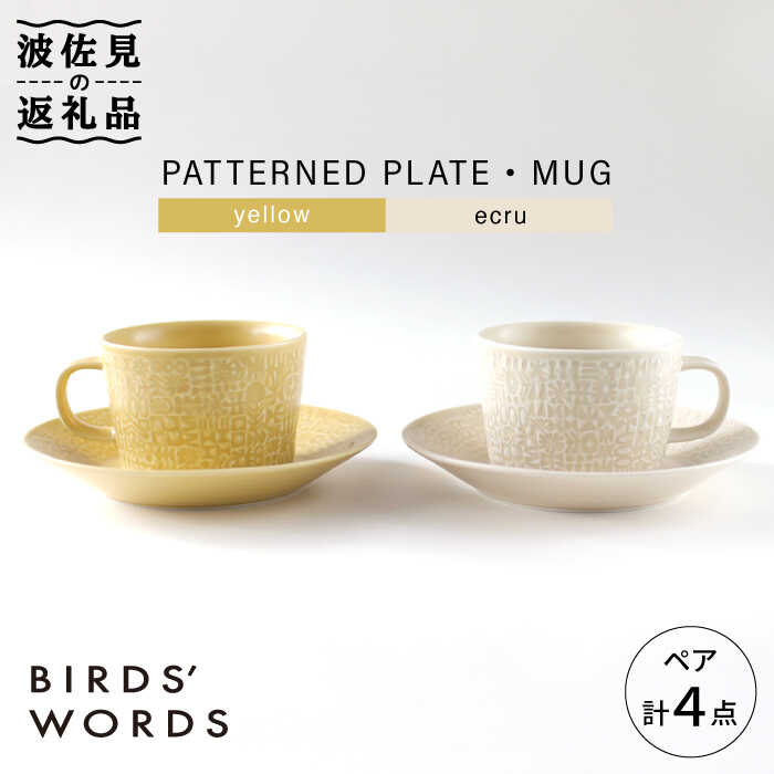 【ふるさと納税】【波佐見焼】PATTERNED PLATE・MUG ペア 4点セット yellow + ecru【BIRDS’ WORDS】 [CF042]