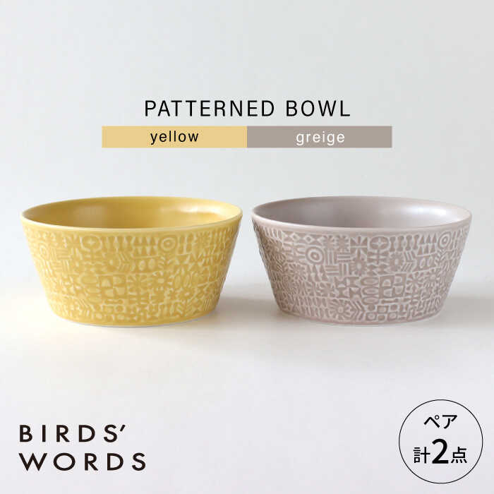 【ふるさと納税】【波佐見焼】PATTERNED BOWL ペア 2点セット yellow + greige 【BIRDS’ WORDS】[CF076]
