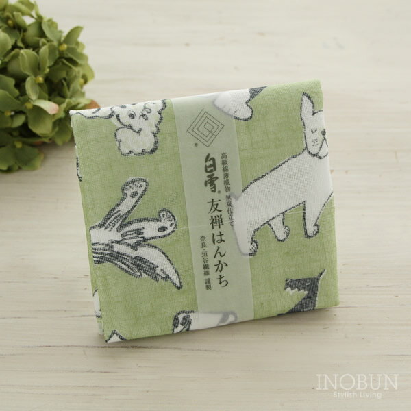 白雪 友禅染はんかち bow wow wow 白雪はんかち 30 x 30cm グリーン