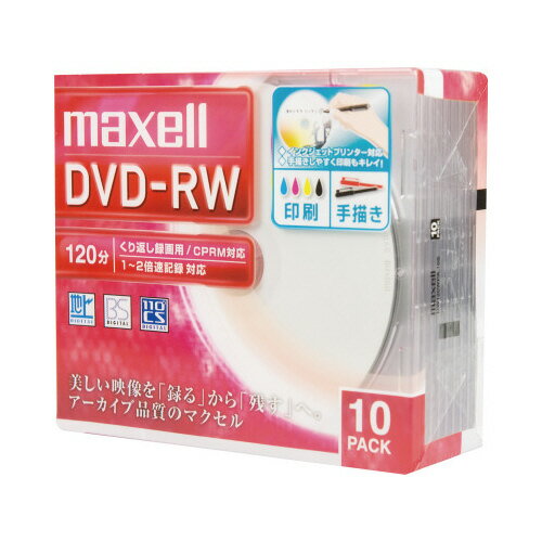 マクセル DW120WPA.10S 録画用DVD-RW 標準120分 1-2倍速 ワイドプリンタブルホワイト 10枚パック