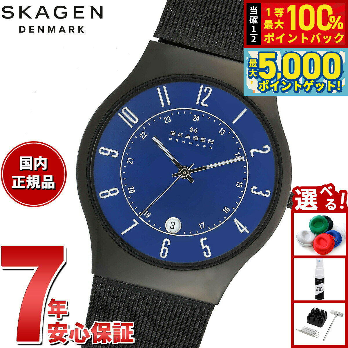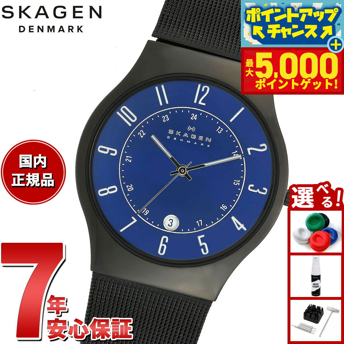 すぐに使える【2点で5%OFFクーポン】スカーゲン 腕時計 メンズ ブラック ブルー クオーツ カレンダー メッシュベルト SKAGEN T233XLTMN TITANIUM