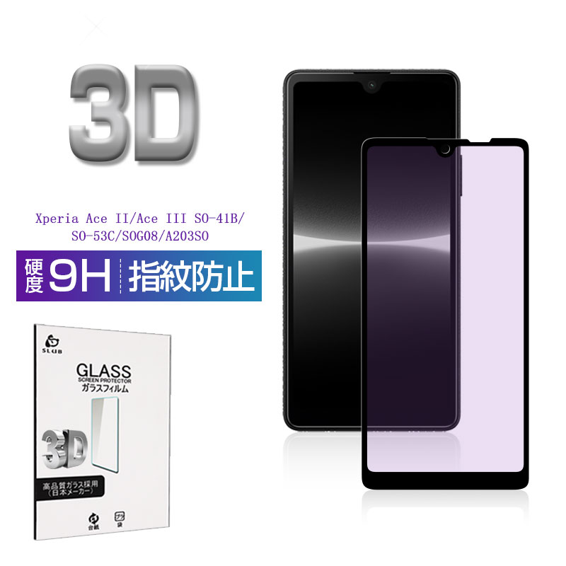 Xperia Ace III SOG08 / SO-53C / A203SO 強化ガラス保護フィルム ブルーライトカット Xperia Ace II SO-41B 液晶保護 3D全面保護 画面保護 スクリーンシート キズ防止 ガラス膜 スマホフィルム ディスプレイ保護フィルム スクラッチ防止