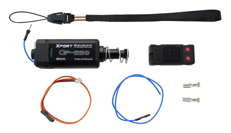 1,000円以下の商品を見る 2,000円以下の商品を見る 3,000円以下の商品を見る 4,000円以下の商品を見る 5,000円以下の商品を見る 6,000円以下の商品を見る商品詳細 モーターブラシではなく電子回路によりモーター制御を行う高効率・高性能・ハイトルクの電動ガン用ブラシレスモーターです。 機械式ではなくデジタル制御によるスイッチコントロールが行われるため、 消耗品であるブラシのメンテナンスが必要なくなると同時に、安定した回転数の確保、低電力消費化、トリガーレスポンス向上も期待できます。 コントロールユニットをモーターに接続することによって電子トリガー機能を持たせることもでき、 2〜5発のバーストモード設定・On/Off機能、フルオートレスポンス時間の設定、弾数リミッター、バッテリー電圧表示をすることが可能です。 FET内蔵のため別途配線加工が必要なくスイッチの長寿命化と、 スイッチ焼けによる通電効率低下/トリガーレスポンス悪化防止を図ることが可能です。 低電圧を感知すると警告音により知らせる機能も搭載しバッテリーの電圧管理もできるようになっています。 【特徴】 ・電動ガン対応 ・2-5までの4段階バーストモードの設定可能 ・直流:7.4V〜11.1V対応 ・稼働温度:-10〜+60℃ ・最大電力:210W ・モータースピード:7.4V 21600rpm±10% ・弾数リミッター:0〜299発、無制限 ・バーストモード発射カウント:2〜5発、フルオート、Off ・フルオート反応時間設定:0.0〜1.0秒(0.1秒単位で設定) ・低電圧警告機能:3.2〜3.6V(リポバッテリー)、5.4V(ニッケル水素)、Off ・内蔵FET ・バッテリー電圧表示ディスプレイ ・特許取得(日本3207874、台湾M519230) 商品内容:モーター/コントロールユニット+接続コード/モーター端子/信号線/ストラップ/取扱説明書(中国語) Made in Taiwan/Product by Novatech 【注意事項】 こちらの製品は海外製エアガンパーツです、必ず下記注意事項をお読みになって、 ご了承上でのご購入をお願い致します。 ■交換、返品、パーツの取寄せが出来ませんので、ご了承下さい。 ■問題があった場合は直接メーカーへお問い合わせください。 ■組み込みの際には必ず取扱説明書を熟読し理解した上でご使用ください。 ■上級者向けパーツのため、メカボックスに強化パーツを組み込んでいる場合でもダメージを与える場合があります。 ■万一、水の中へ落した場合には直ちにバッテリーの接続を解除し乾燥させていください。 ■接続端子を誤ると11.1Vを超え大電流が流れる場合があり大変危険です。 ■通関時、検査がある為、開封、また使用痕がある場合ございます。 ■購入後、問題があってもご自身で調整、修理出来る方のみ、ご購入下さい。 ■18歳以上対象商品になります。