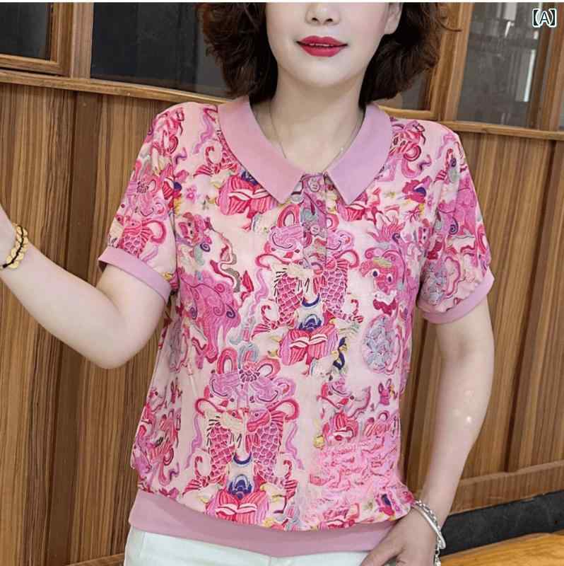 レディース ファッション おしゃれ 春夏 秋 冬 大人 上品 高級 マダム ミス ミセス プレゼント ママ 服 夏 半袖 T シャツ 女性用 おしゃれゆったり お腹 カバー シフォンシャツ