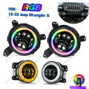 USヘッドライト 2xRGB Halo 7inch LEDヘッドライトコンボキット4 ''ジープラングラーJL JLU用フォグライト 2xRGB Halo 7inch LED Headlights Combo Kit 4'' Fog Light For Jeep Wrangler JL JLU