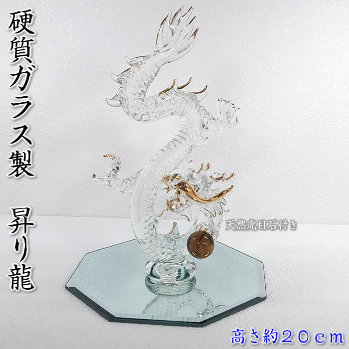 昇り龍の置物/金運降臨龍【硬質ガラス/金メッキ】高さ200mm/タイガーアイ天然石付き SD-FKT XSG3/78294[開運招福の干支の置物/辰年置物/辰の置物/たつ年干支飾り/正月飾り/龍の玄関飾り/床の間 飾り/即納]91973【あす楽対応】