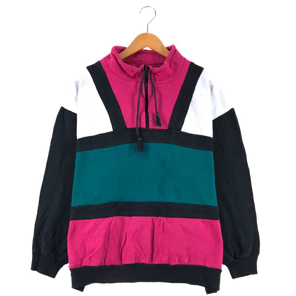 JUSTINALLEN XTRA 切替スウェット ブラック ハーフジップ トレーナー 黒 ピンク 緑 グリーン プルオーバー 切替 ビッグサイズ ビッグシルエット マルチカラー 古着【中古】wv2101-2794