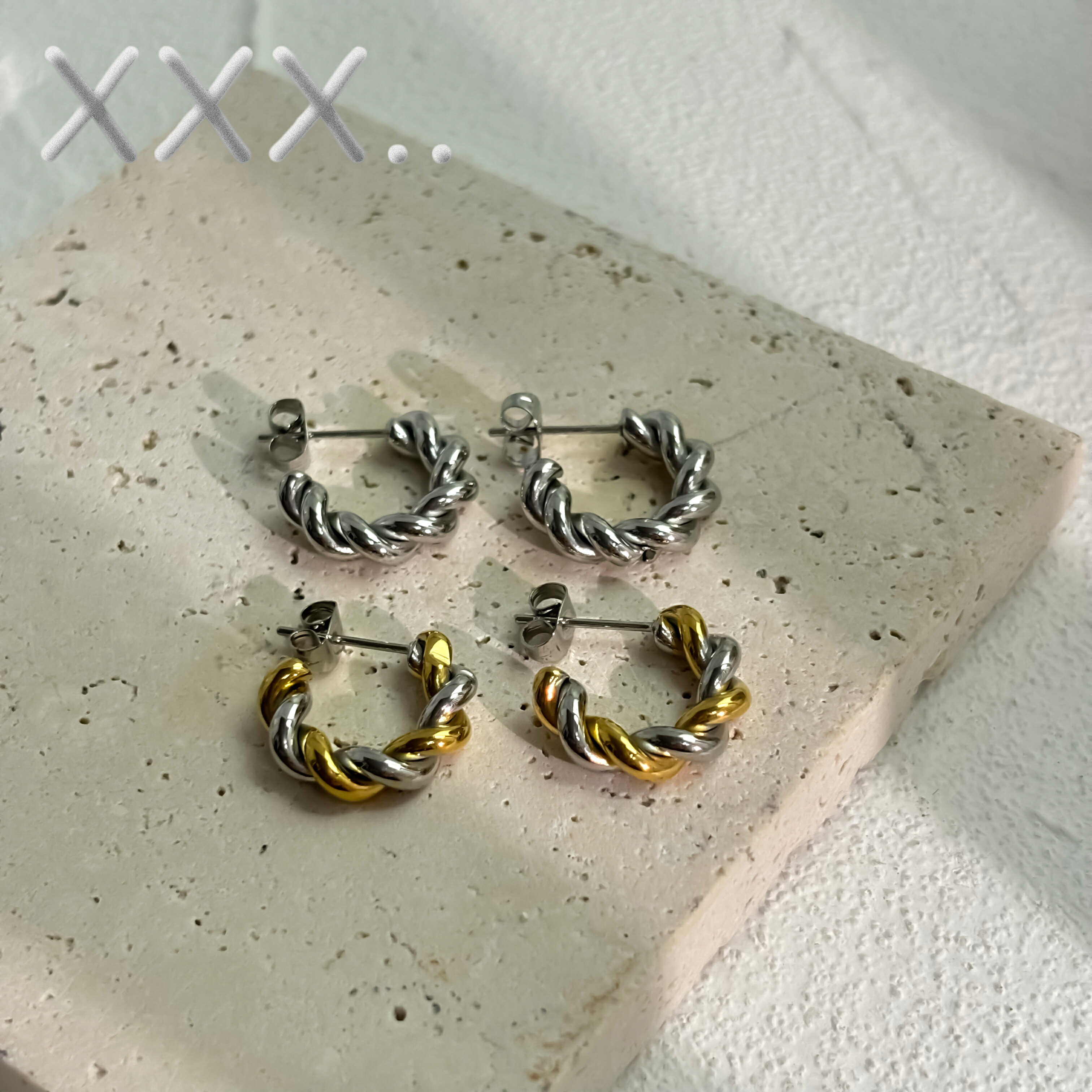 【期限限定¥1190→¥1000】【最大1000円OFFクーポン】【ゆうパケット送料無料】ステンレス ピアス 金属アレルギー つけっぱなし サージカルステンレス レディース ツイスト ねじねじ 撚り シルバー バイカラー p079 xxx..
