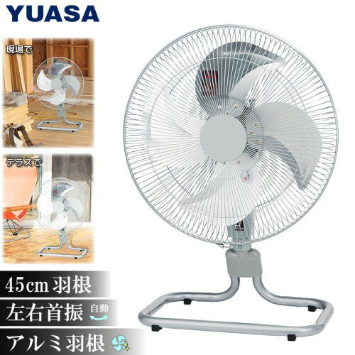 【LINEクーポン配布中】扇風機 アルミ工場扇 シルバー [YAF-459T] サーマルプロテクター内蔵 首振り機能 首折れ4段階 幅51.5×奥行31×高さ71cm ユアサプライムス