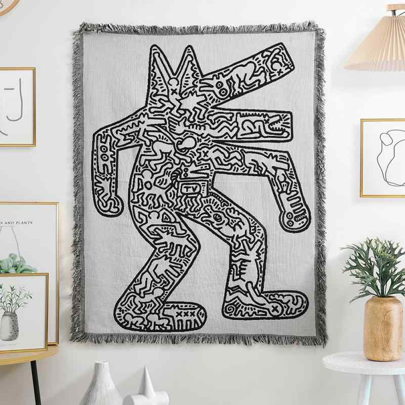 ブランケット ラグ マット ソファー ベッド カバー 敷物 カーペット タペストリー 房 白地 昼寝用 掛物 汚れ防止 多用途 アメリカン アート