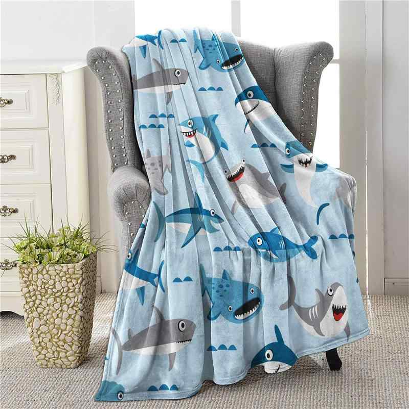毛布 子供用 キッズ 男の子 女の子 サメ柄 フランネル 柔らか ふわふわ あったか ブランケット ひざ掛け プレゼント ポリエステル素材 防寒 肌触り 軽量 寝具 リビング 寝室 ソファ 通年 モダン シンプル