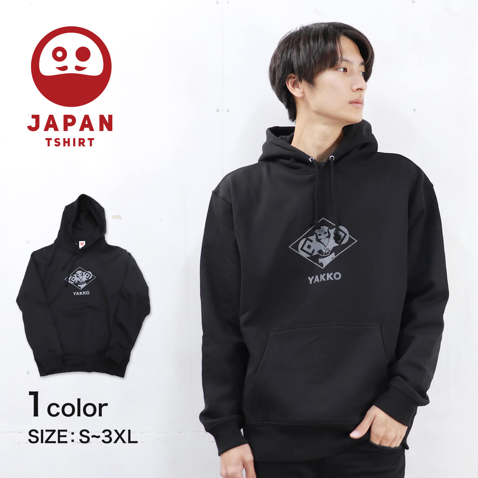 【YAKKO パーカー】 パーカー 裏毛 パイル 綿100% プルパーカー ブラック トップス イラスト プリント オールシーズン メンズ レディース 黒 凧 和 日本 和柄 JAPAN TSHIRT